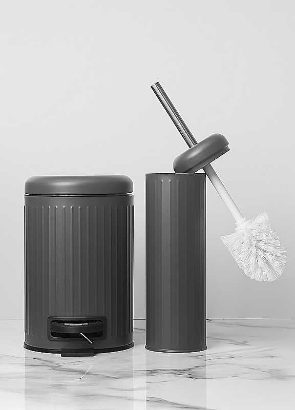 Update your bathroom with the Pifco Ribbed Toilet Brush and 3 litre Ribbed Bin.Ribbed Toilet Brush:Painted steel holderStainless steel handleDurable bristle brushRemovable inner liner3 litre Ribbed Bin:Painted steel bodyPedal operated lidRemovable inner bucketIron Steel, Polypropylene (PP)Size approx. 40H x 9D cmDimensions approx. 26H x 20.5W x 17D cmBrush size approx. 39.8H x 9.3Dia cmBin size approx. 36H x 20.5Dia cm | metal garbage bin, dark bathroom accessories, bathroom garbage bin, toilet brush and holder, trash bin lid, bathroom trash can, bathroom dustbin, stainless steel rubbish bin, toilet brush and bin, bathroom accessories set