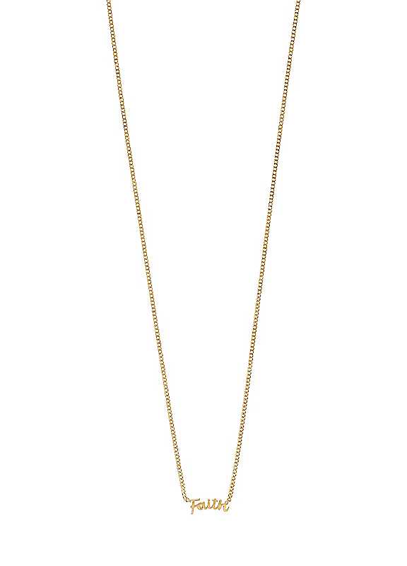 Reflect your love and wear your mantra with pride! With your new signature piece, you get a sleek, gold-plated necklace with a small pendant in cursive script with the word 'FAITH'. A genderless piece, that can be worn by anyone, and a great gift idea for a loved one. Wear it solo or layer up for a personalised look. No matter how you choose to style the chain, which measures 38 cm + 9 cm extension chain, it's a must-have in your daily wear collection. And guess what - it's made from 99% material with care for our shared in mind.Brand: PilgrimGold-plated necklace with FAITH pendant