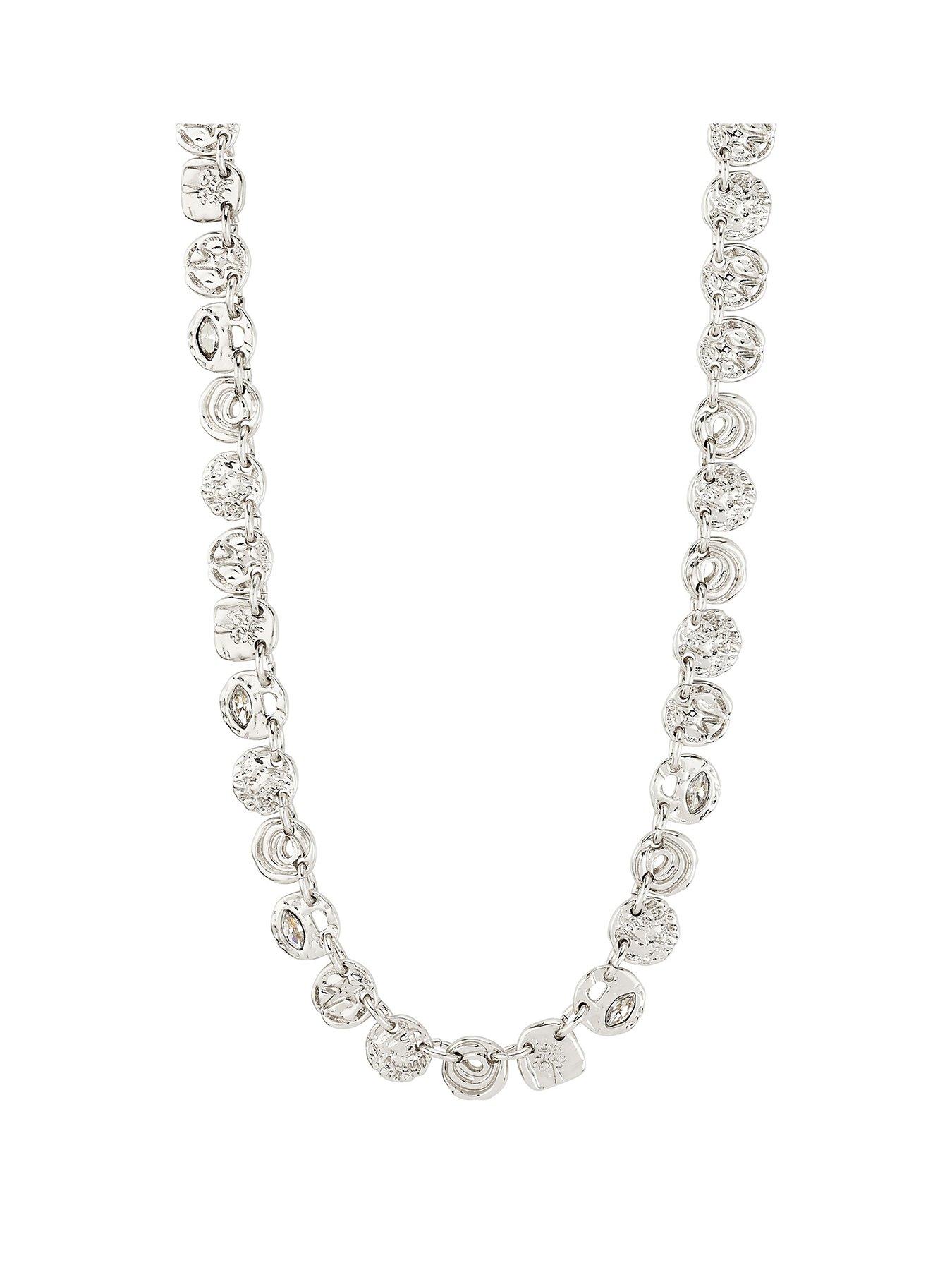 Pilgrim Fire Necklace Silver-Plated Fuel Your Fire! The Fire Necklace From Pilgrim Is All About Attitude, Bringing Bold Texture And Loads Of Personality To Your Look. Its Rustic Pendant Has A Tactile Surface And That Effortlessly Cool Handcrafted Vibe, Giving Everything From Minimalist Outfits To Edgy Ensembles An Instant Upgrade. The Chain Sits Beautifully At 38 Cm With A 9 Cm Extension, Making It Perfect For Layering With Other Pieces Or Rocking Solo As A Standout Statement. Depth: 4 Mm Height: 480 Mm Width: 8 Mm Fashion Jewellery Type: Necklaces Metal Type: Base Metal Silver-Plated Necklace With Coin Details Unique Pendants With A Raw Finish Measures 38 Cm + 9 Cm Extender Chain Rustic Handcrafted Feel Made From 98% Recycled Materials