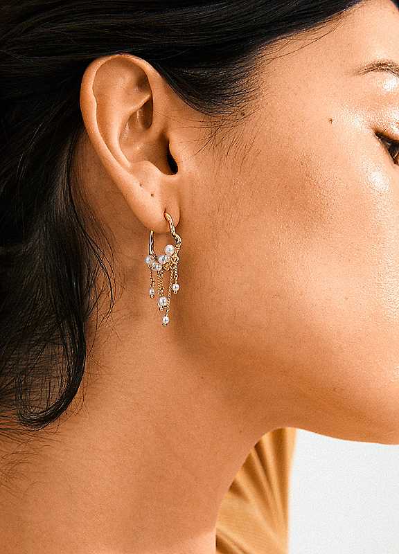 For every soul! Infuse your look with a magical vibe with the gold - plated JASPER hoops from Pilgrim - earrings featuring an, dreamcatcher - inspired design. Pearls and delicate chains float like small water bubbles, imparting a whimsical touch that ensures each movement is unique. A must - have for adventure lovers and anyone who appreciates a distinct, light, and fluid aesthetic that brings a touch of boho magic to everyday life! The earrings are crafted from 80% material with care for our.Gold-plated hoops