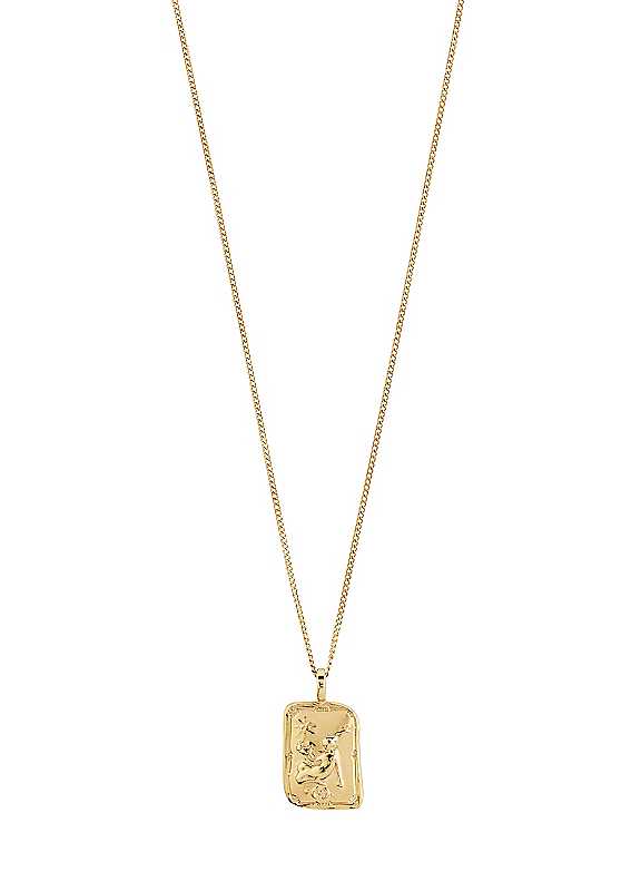 The STARS live within you! With the VIRGO Zodiac Sign necklace from Pilgrim, you get a piece that is as unique as you are. A gold-plated chain with a square coin pendant in a dual design. Flip it for either a classic Virgo zodiac motif or for your sparkling constellation with glittering Preciosa crystal stones - talk about cosmic coolness! The pendant has a rustic, handcrafted look that exudes an edgy, genderless look. A piece that is not only a personal statement, but also an ideal gift that carries a deeper meaning and connection to the stars. The necklace measures 40 cm + 12 cm extension chain and is made from 98% material.Brand: PilgrimStar sign: Virgo | necklaces casual, gold stone necklace, boho style necklace, gold coin pendant necklace, rectangle pendant necklace, handmade jewelry necklaces, astrological sign necklaces, gold chain necklace