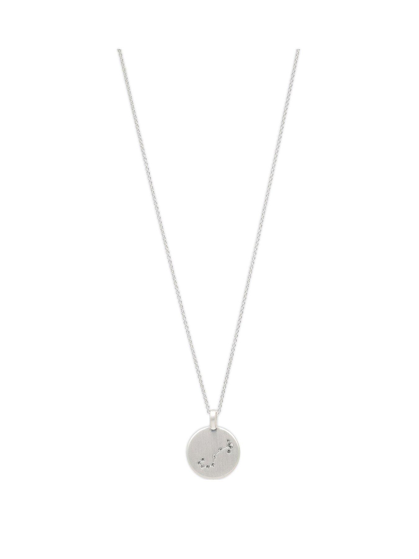 Pilgrim Zodiac Sign Coin Necklace, silver-plated Beautiful zodiac necklace with star sign. The necklace is silver-plated and has a round pendant adorned with precious crystal stones in the shape of the star sign. The necklace has a soft, matte finish and is the perfect gift for yourself or one you cherish. Depth: 5 MM Height: 490 MM Width: 18 MM Expandable: Y Fashion Jewellery Type: Necklaces Metal Type: Base Metal Zodiac sign Silver-plated necklace with a zodiac pendant 40 cm chain + 9 cm extension chain With sparkling Preciosa crystals Exclusive satin finish with starsign constellation 88% Brass, 10% Crystal, 2% Plating