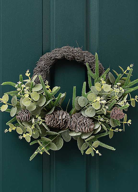 Refresh your decor with the modern simplicity of this 40cm artificial green foliage half wreath - a sleek, understated piece that proves less really is more. Featuring a graceful arc of lush, lifelike greenery arranged on a minimalist open frame, this half wreath brings a clean, contemporary touch to any space. Perfect for year-round display, seasonal styling, or even as a statement piece for weddings and events, it's a beautiful way to add natural texture without the fuss. Hang it on doors, walls, or windows for an effortlessly elegant look. Whether your vibe is modern farmhouse, boho chic, or classic minimalism, this half wreath brings a touch of the outdoors in - stylishly and effortlessly.Bring indoors during adverse weather conditionsWipe clean with a dry, soft clothWreath width approx. 40 cm | outdoor fall wreath, small fall wreath, artificial leaf decoration, small green wreath, outdoor wreath, small wreath