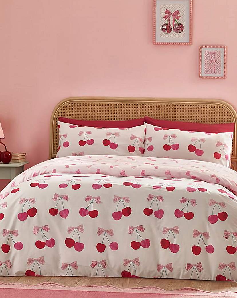 Pink Catherine Lansfield Cherries Duvet Set