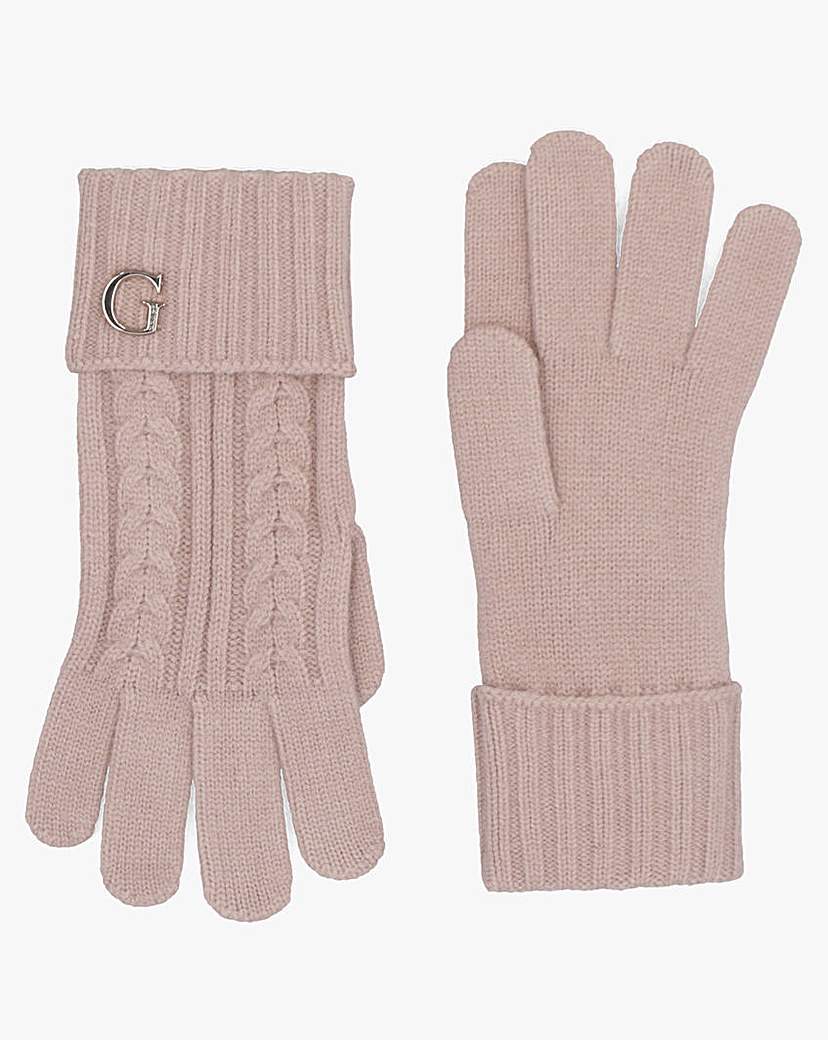 Guess Pink Knitted G Logo Gloves Keep warm this Winter Season with the classic Guess Pink Knitted G Logo Gloves. A premium mid-weight knitted rib design with cable inserts and a turn up cuff. Silver tone Guess 'G' logo adds detail. Technical information: Knitted, Ribbed Design, Cable Inserts, Turn Up Detail, G Logo, Guess Branding