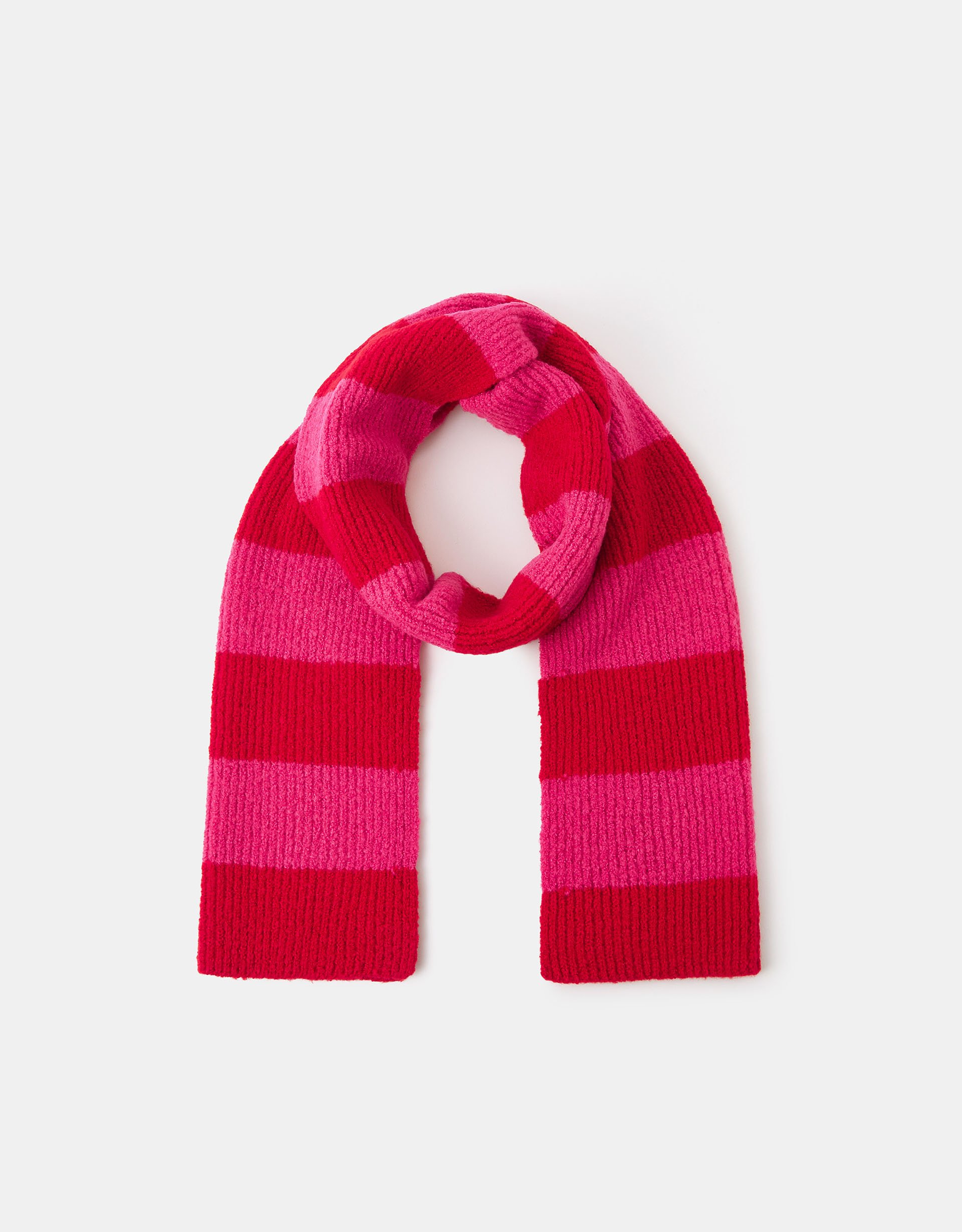Pink and red? Big YES. Stitched with snuggly-soft yarns in a ribbed finish, this scarf showcases bold stripes in the best colour combo. Not only will it brighten up your winter looks, it'll brighten up your day, too!