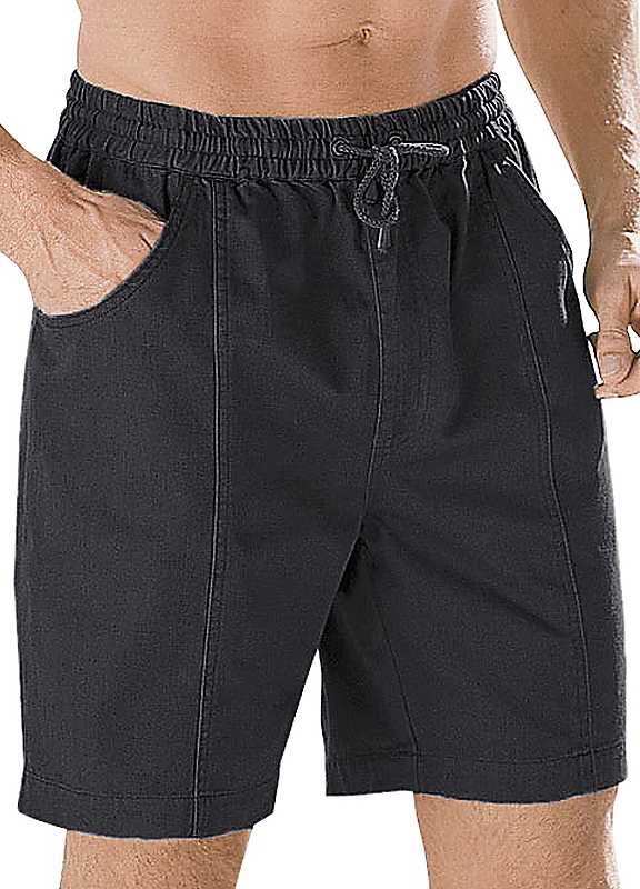 A casual, plain pair of Bermuda shorts featuring two front pockets, a coin pocket, and one back pocket. Elasticated & drawstring waist Casual fit Washable 100% Cotton
