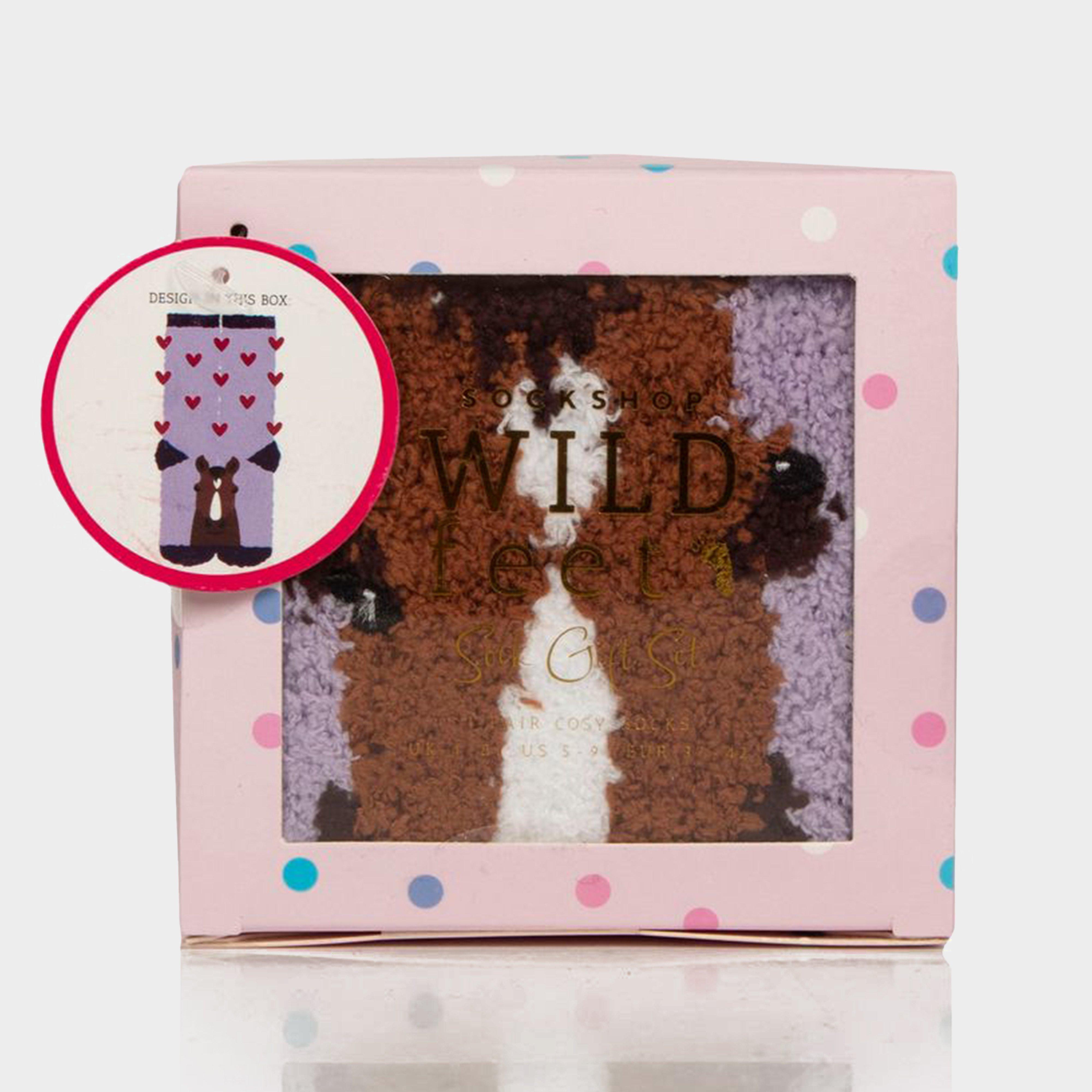 Perfect for gifting or simply treating yourself these fluffy socks are a winter essential if you want warm, cosy nights. Super soft to the touch and fluffy these socks stay comfortable all day long. Finished with complete gift packaging its an easy and loved gift to give to loved ones.Platinum Ladies' Wild Feet Cosy Lounge Socks Gift BoxSuper soft and fluffyAdorned with a cute animal printOne sizeMachine washableComplete with gift packaging