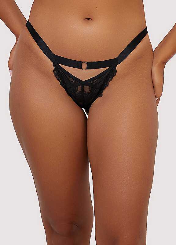 Playful Promises Eleanor Strappy Embroidery Thong - Black - Size 16