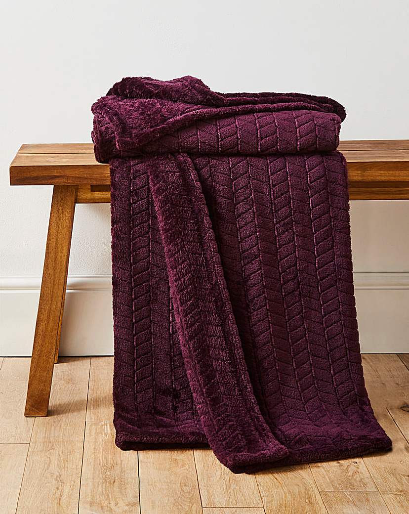Plum Embossed Jacquard Fleece Throw -