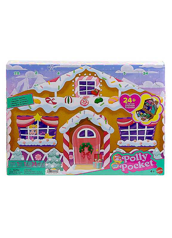 Reveal tiny surprises in this buildable Polly Pocket Advent Calendar with one micro doll and 24+ surprise gifts! The festive gingerbread house outer opens to an adorable holiday-themed playset! Kids can discover a new surprise gift each day that can be played with inside the gingerbread house or used as an exterior decoration! Pack accessories in the large present that opens or cosy up by the fireplace with gingerbread friends. There is so much to discover this holiday season! Ideal for ages 4 years old and up. Colours and decorations may vary.Age suitability: 4 years+Choking Hazard - Not suitable for children under 3 years of age.