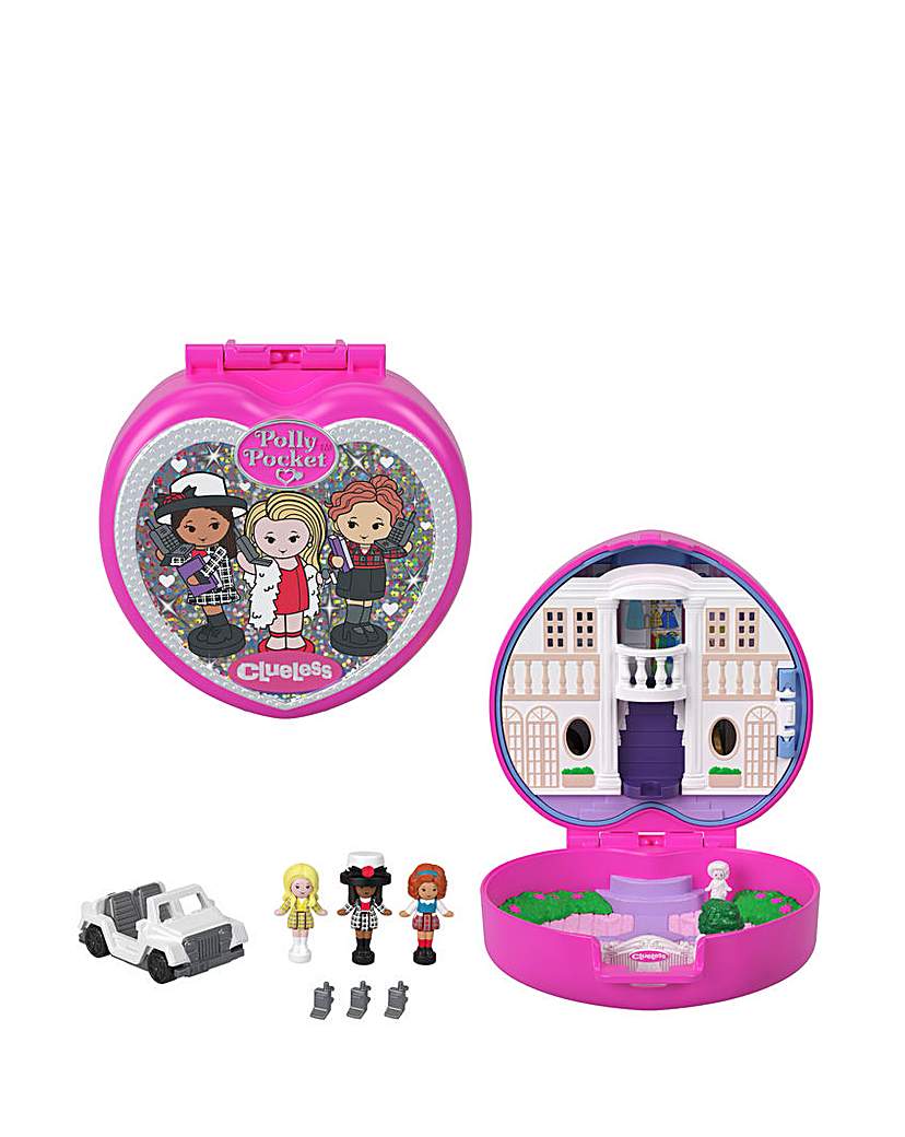 Step into a miniature world of fashion, friendship, and iconic '90s style with the Polly Pocket Clueless Compact. This heart-shaped keepsake celebrates the beloved movie Clueless in true Polly Pocket fashion; tiny, detailed, and totally fabulous. The shimmering exterior features Cher, Dionne, and Tai in a glam portrait, setting the stage for what's inside: a miniature Beverly Hills mansion packed with movie magic. Open the compact to reveal Cher's iconic bedroom and high-tech sliding closet to the grand staircase and circular driveway. Recreate classic scenes with themed accessories like Chers white Jeep, Dionne's statement hat, and matching phones for all three friends. Moving features add even more fun including sliding wardrobe doors. With premium design, this collectors set is perfect for both display and imaginative play. Whether you're a Polly Pocket fan, a Clueless devotee, or both, this compact is a must-have throwback to a totally timeless teen classic. Ages from 4 years.