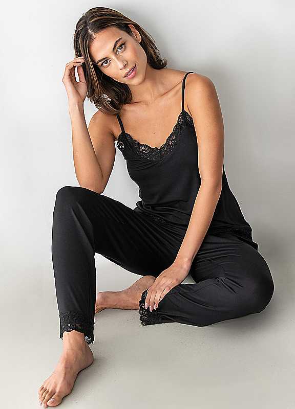 Calling all sleeping beauties! Bring comfort and luxury to bedtimes with these beautiful pyjama bottoms from the Sofa Loves Lace collection.Made from super soft jersey fabric, these nightwear trousers feel strokably soft and pair beautifully with the matching Sofa Loves Lace Cami. In a gorgeous soft fabric, the delicate lace trim along the hem adds a flirty look. There's even a Sofa Loves Lace Longline Soft Jersey Gown to complete your lounging look.Brand: Pour MoiWashable95% Viscose, 5% ElastaneKeep away from fire.