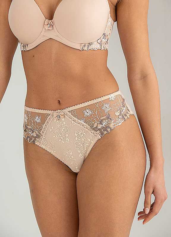 Pour Moi Sofia Embroidered Lace Bikini Briefs - Latte - Size 20