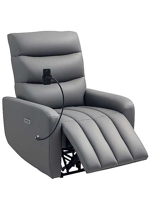 Power Recliner Faux Leather Grey Chair