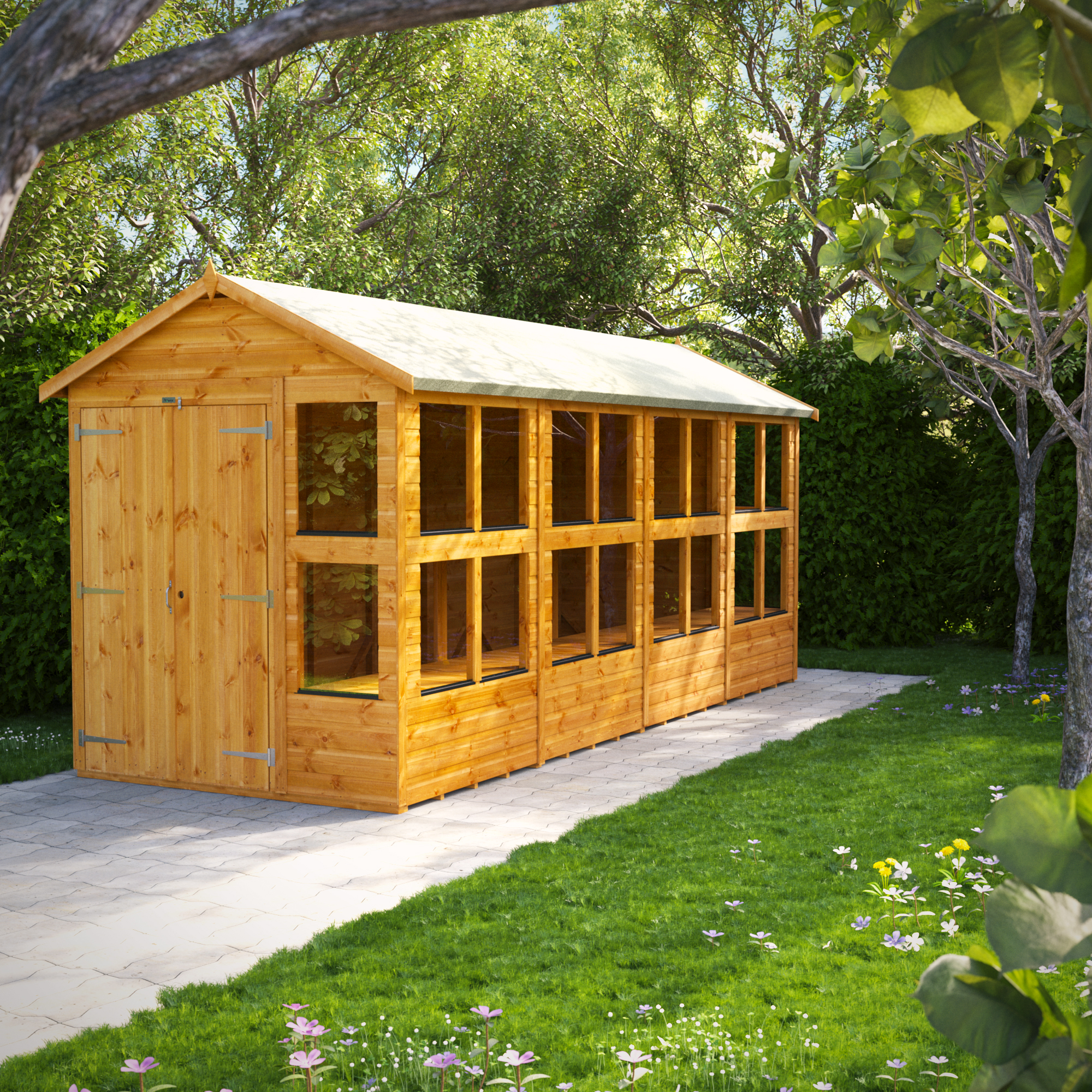 Powersheds Double Door Apex Shiplap Dip Treated Potting Shed - 16 x 6ft