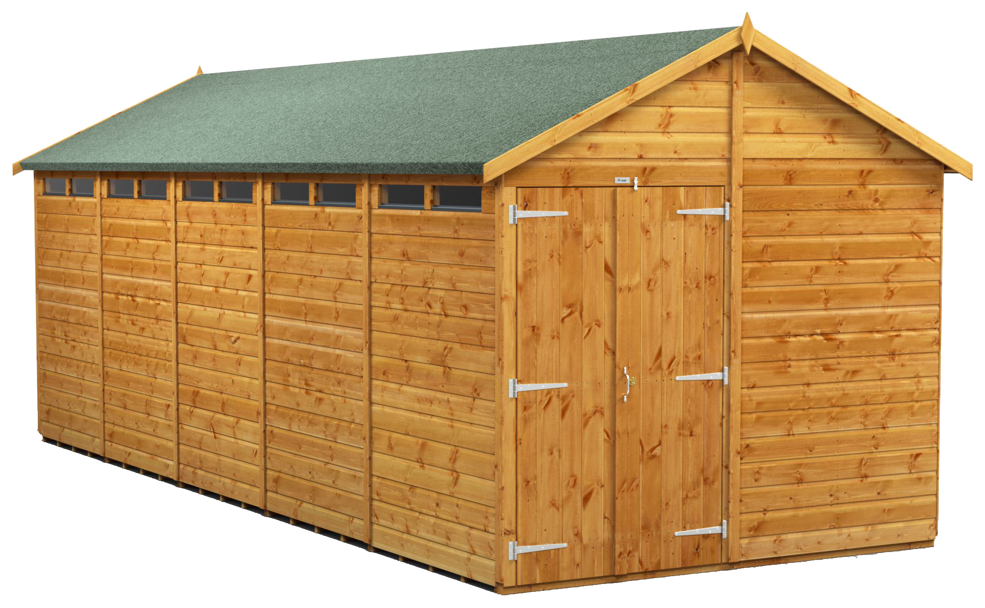 Powersheds Double Door Apex Shiplap Dip Treated Security Shed - 20 x 8ft