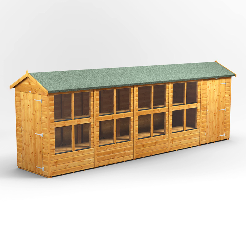 Powersheds Power Apex Potting Shed Combi including 4ft Side Store 20' x 4' in Natural Timber