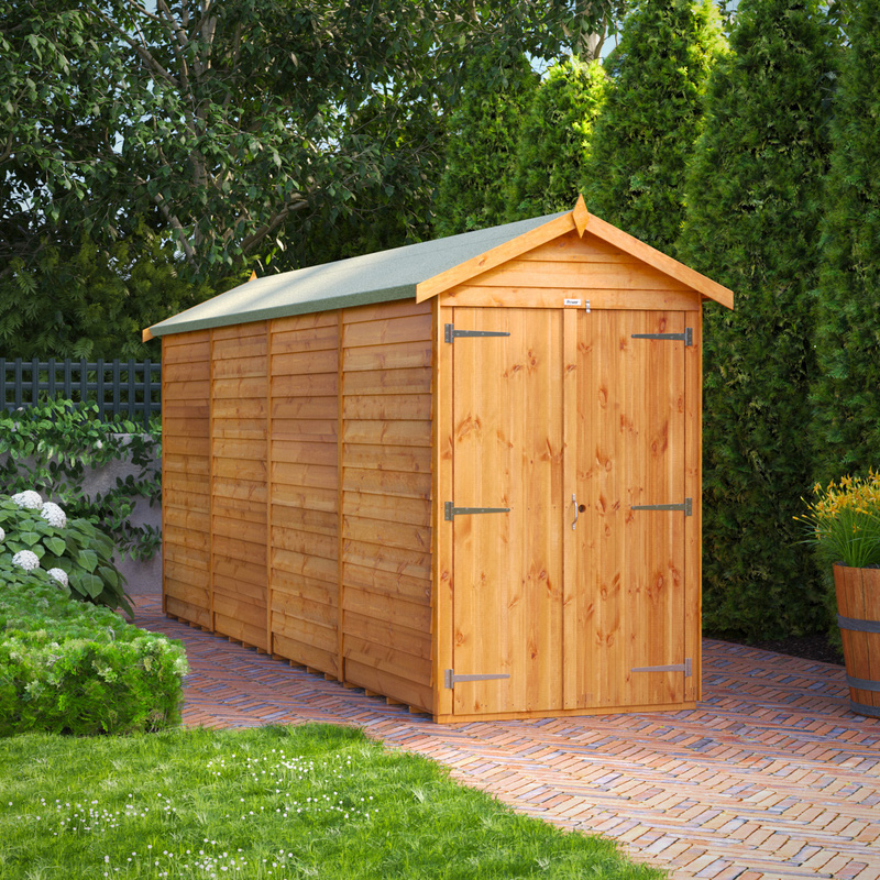 * Responsibly sourced timber * 10mm rustic overlap cladding * Galvanised rust resistant metalwork * High performance polyester roof felt * Advanced wood preservative * Includes: Components for Garden Shed, Premium Felt, Fixing Kit (including nails, screws, handle and turn buttons & a set of instructions | Powersheds Power Overlap Apex Shed 16' x 4' No Windows in Natural Timber