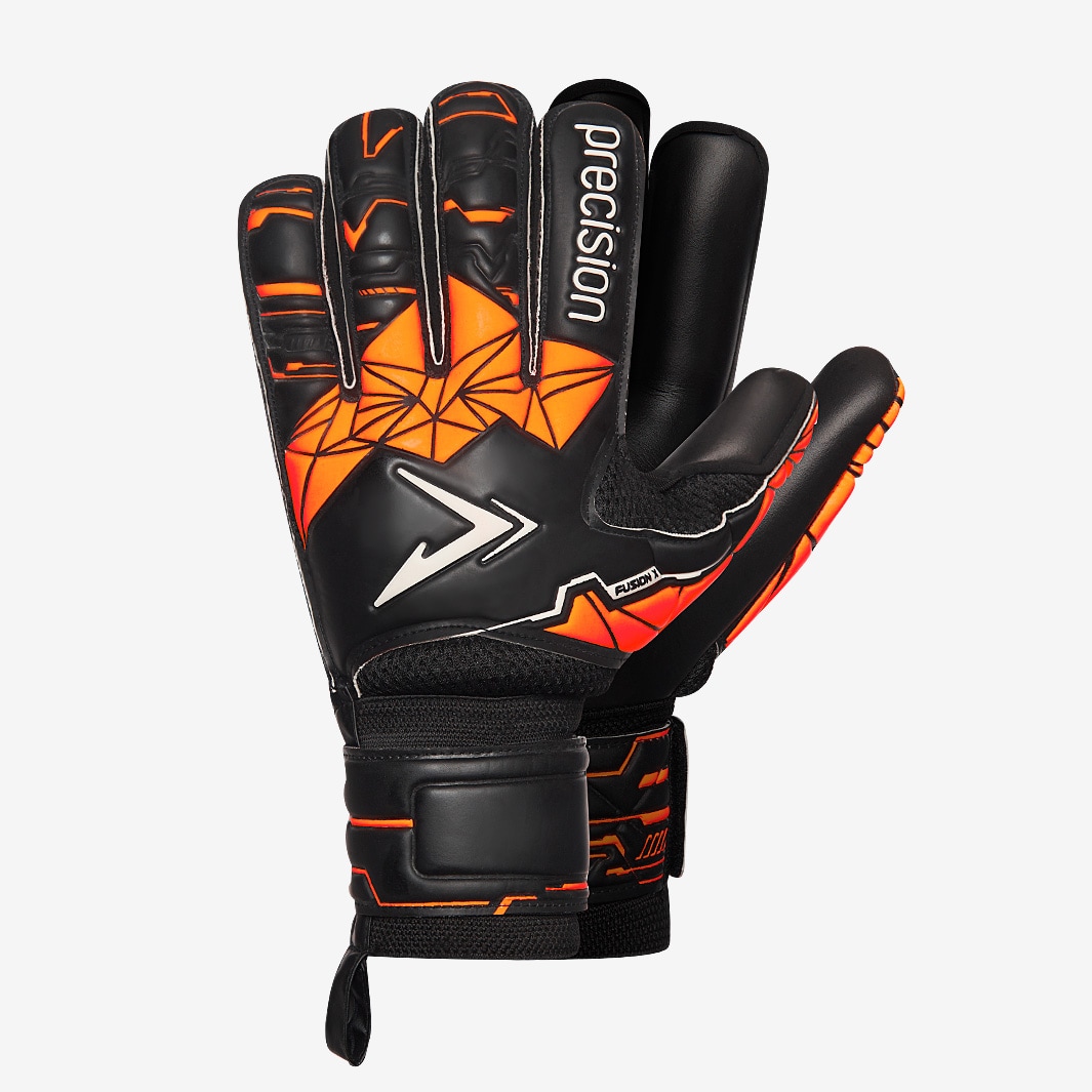 Excel in training and on matchday with Precision Fusion X Roll Finger Protect goalkeeper gloves in BlackFluo Orange, featuring a traditional design bolstered with modern technology for longlasting allround performance. Developed in partnership with pro keepers, the third generation of Precisions popular Fusion X series beats out the competition with a sleek, reengineered backhand. The Roll Finger Protect edition features a 4mm NB Black latex palm for great grip in all conditions and a rollfinger cut for maximised ball contact. Internal finger protection helps to prevent overextension and increases overall control. At the wrist, a more supportive closure keeps the gloves stable and secure, and theres a pull loop to help get them on and off. Rollfinger cut Provides the best ball feel as the cut ensures the latex is always in contact with the ball when both catching and throwing 4mm NB Black latex Finger protection system Full traditional material backhand Coolair mesh underhand fabric to stop you sweating Comfortable fully elasticated wristband and pull loops with double touch fastener for extra support