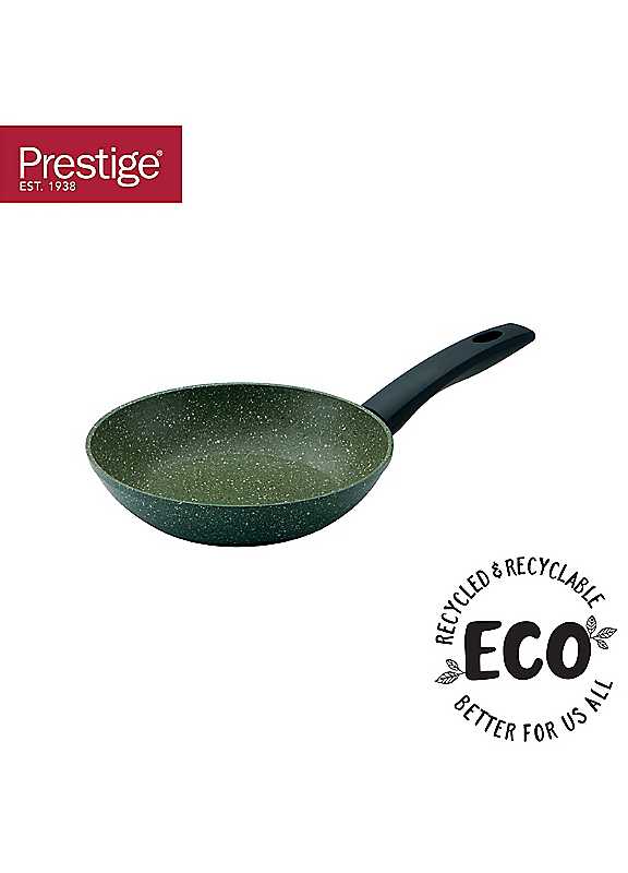 Greener living often starts in the kitchen - the heart of the home. Introducing the Prestige ECO non stick frying pan, from the worlds friendliest, plant based non stick range. Prestige is proud to bring an ethical, sustainable, 100% recycled frying pan to the kitchen. Made in Italy, the reason the Prestige ECO range offers the best frying pan is because the plant based non stick cooking surface is PFOA free, palm oil free and scratch proof. If you are looking to make your daily coking more energy efficient by using an induction hob, ths range is perfect for this as well as any other hob type. The comfort soft grip handle features stay cool technology. Prestige have teamed up with TREE AID to support their Great Green Wall project in Africa. So for every product sold from our ECO range, we will plant a tree.Brand: PrestigePLANT BASED NON STICK - This green eco cookware set is equipped with the world's friendliest multi layer PFOA free non stick. It's scratch proof easy to clean and requires less oil for healthier mealsRECYCLED AND RECYCLABLE - Pots and pans set made from recycled materials and fully recyclable. Prestige have also partnered with TREE AID and committed to planting one tree for every pan they sellSTEEL INDUCTION BASE - As well as being eco friendly, this pan set features an innovative induction base and is suitable for all hobs. Perfect for energy efficient cooking and even heat distributionOVEN AND DISHWASHER SAFE - This induction hob pan set is perfect for hob to oven cooking up to 150°C and you will also save time cleaning it as it is dishwasher safe5 YEAR GUARANTEE - Prestige Eco cookware is Made in Italy from durable aluminium, which come with a 5 year guarantee