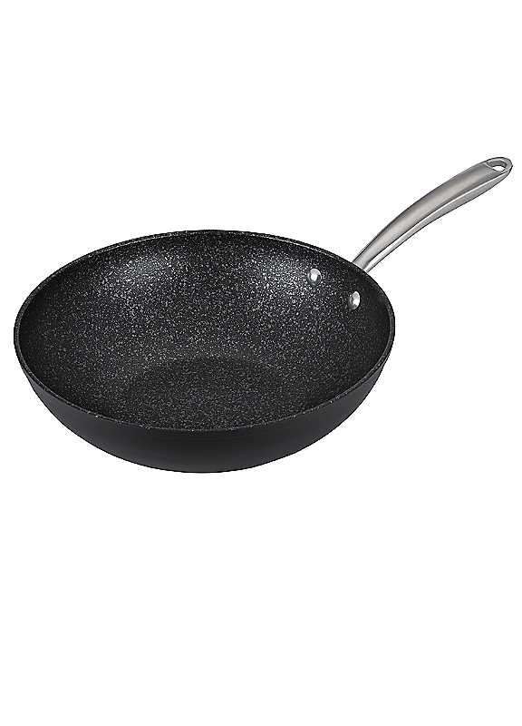 Old pans looking scratched and tired? Scratch Guard features a toughened non stick coating that keeps your pans looking and performing like new for longer! The stone effect frying pan interior features advanced anti scratch technology and an ultra durable, three later non stick for fuss free cooking. This means the triple layer non stick coating always stays where it belongs - inside the pan rather than flaking off - for healthier happier meal times. The matt black ceramic non stick wok exterior not only looks great but wipes clean with ease. For 80 years we have been designing products to make your life easier in the kitchen, so we know its the little things that can make a big difference.Brand: PrestigeReasons we love Scratch Guards non stick range;Scratch resistant tiple layer non stick coating Aluminium body combined with a smooth ceramic exterior High quality steel base for fast and even cooking Solid stainless stell handleEasy clean and dishwasher safe Oven safe up to 260c/500f/ Gas mark 10Suitable for all hob types including induction10 year guarantee
