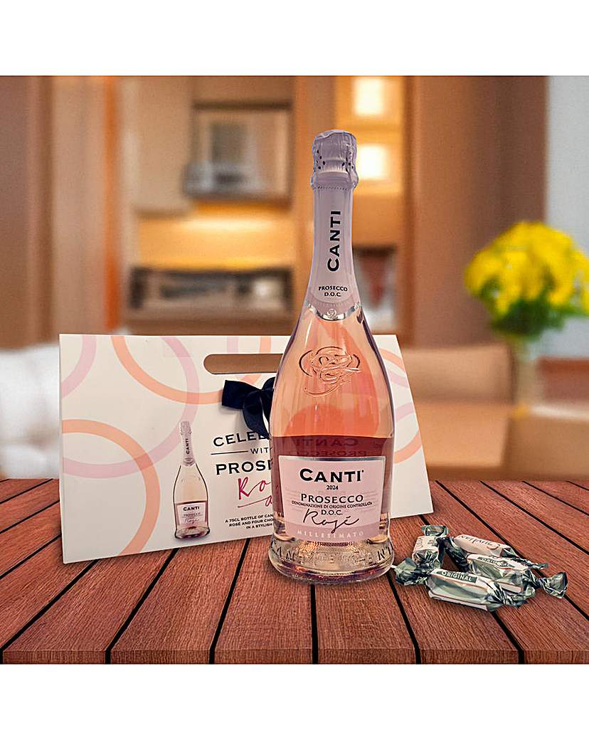 Celebrate with Prosecco Rose! A 75cl bottle of Canti Prosecco D.o.c. Rose and four chocolate truffles in a stylish handbag shaped pack. Contains: 75cl Canti Prosecco D.o.c. Rose. 10.5% ABV 7.9 UK Alcohol Units. 4 x Guylian Temptations Original Pralines (42g e).