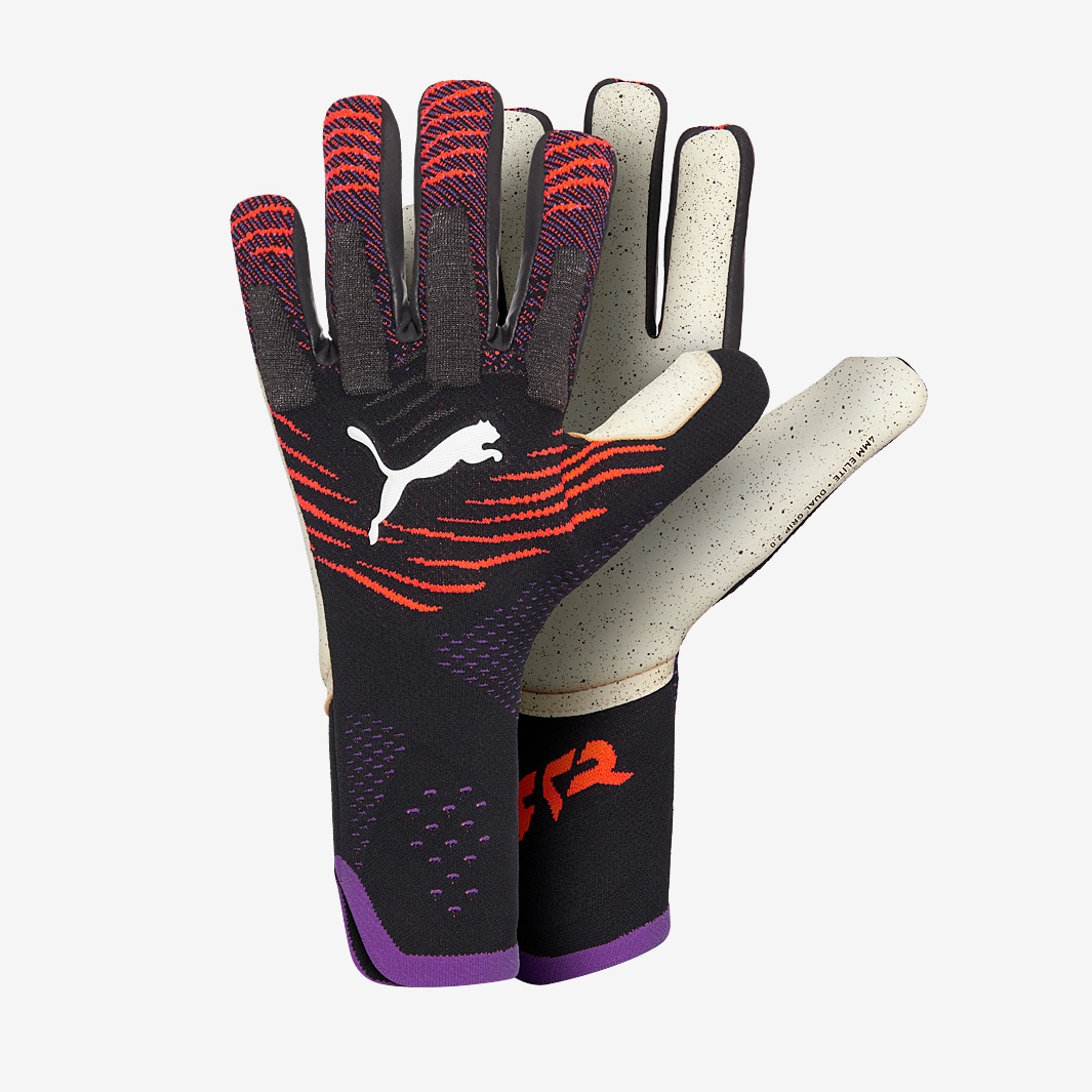 Play the perfect game wearing PUMA Future Ultimate Negative Cut goalkeeper gloves in Puma BlackGlowing RedPurple Glimmer. No distractions, just pure focus. Streamlined for superior performance, the Future puts fewer layers between your hands and the ball for improved sensory perception and control. For punching, the grip yarns are built into the backhand itself, eliminating bulk but still granting purchase on the ball for big clearances. The integrated construction delivers on comfort, too, with the soft and stretchy knit body moulding and adapting the fit as you flex and move your fingers. Perforations within the material aid airflow, while the various elasticities and thicknesses in different areas provide the secure feel you need to play with confidence. On the palm, PUMAs toptier ELITE+ Dual Grip 2.0 latex uses extrasticky particles for reliable grip in all conditions. At the wrist, the strapless closure is elastic enough to stay tight on its own, providing a close, comfortable fit from first minute to last. Future range endorsed by Ederson and Manuela Zinsberger Palm 4mm ELITE+ Dual Grip 2.0 Latex with extrasticky material particles provides excellent grip in all weather conditions Cut Negative BackhandBody Soft and stretchy knitted body for adaptive, supportive fit with integrated grip yarns to enhance ballglove interaction and punching power Integrated perforations for breathability and wearing comfort Wrist Closure Strapless firm fit construction with varying elasticities and thicknesses for security and support Thumbwrap extended latex palm for maximum catching area and comfort