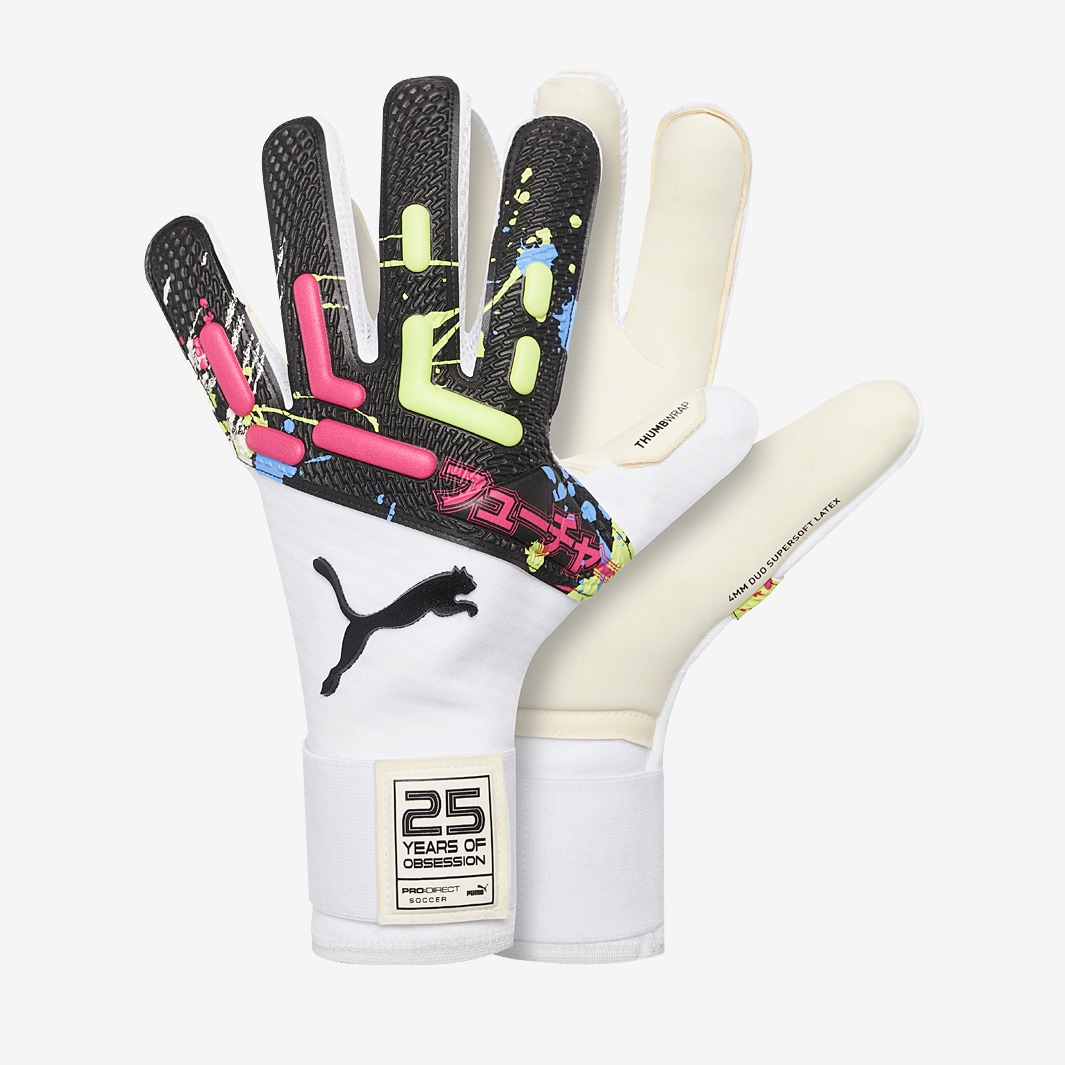 Claim victory for your team with PUMA Future x PowerCat Tokyo Pro Hybrid PD25 SE goalkeeper gloves in Multi, a special edition of the Future Pro Hybrid created in recognition of ProDirects 25th anniversary. 25 years of ProDirect, 25 years of obsession. To celebrate our anniversary year, weve partnered with the biggest brands in the game to bring back some of the best colourways from the past quarter of a century. This exclusive version of the Future Pro Hybrid takes inspiration from 2011s PowerCat Tokyo gloves, featuring vibrant colours and graphics styled on the Japanese capitals famous Akihabara electronic district. Combining rollfinger and negative cuts, the Future Pro Hybrid provides the perfect mix of catching potential and comfort. Its Supersoft latex palm with Duo coating is designed for durability, providing longlasting grip and impact absorption in wet and dry conditions. The dualmaterial backhand pairs a knitted underlayer with a latex upper section, ensuring a lightweight, breathable feel while adding extra distance to your punches. At the wrist, a removable elasticated strap allows you to personalise the fit. Future range endorsed by Ederson ProDirect 25th Anniversary special edition colourway based on 2011 PowerCat Tokyo PD Exclusive made especially for us, so we can bring them to you Palm 4mm Duo Supersoft latex Cut Hybrid Rollfinger on outer fingers, negative on inner fingers and thumb BackhandBody Knitted backhand for enhanced fit and agility with latex application to enhance grip and punching power Wrist Closure Elasticated, removable wrist strap for secure fit and wrist stability Thumbwrap extended latex palm for maximum catching area and comfort
