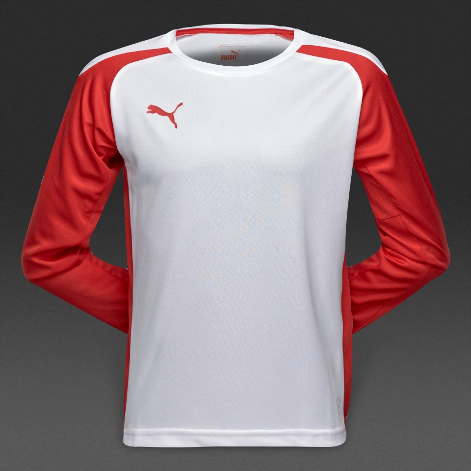 Constructed from lightweight fabric, the Puma Junior Speed Longsleeved Shirt Puma RedWhite will keep you cool and comfortable. The worlds best sides wear the worlds best kit and so can you. Inspired by designs worn by international and club sides and manufactured to the same specification, the Puma Junior Speed Longsleeved Shirt Puma RedWhite benefits from sweatwicking fabric to keep you dry and comfortable. Utilising the latest lightweight and durable materials, the Puma Junior Speed Longsleeved Shirt Puma RedWhite features innovative technologies engineered to enhance the performance of your team on the pitch. ProDirect is the worlds largest online Teamwear store with an unrivalled selection of Puma match day and training kit so you can fulfil all of your teams requirements. ProDirect Teamwear The Professionals Choice Long Sleeves PUMA Cat logo dryCELL technology
