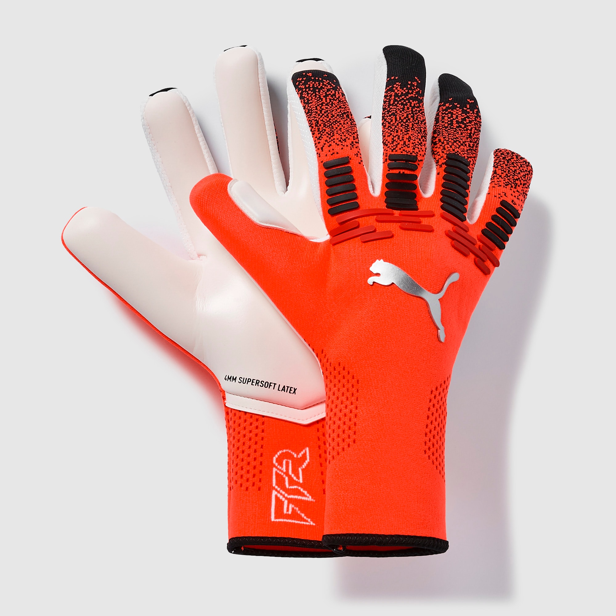 Face down every challenge wearing PUMA Kids Future Pro Negative Cut Goalkeeper Gloves in Glowing RedPuma RedPuma Black. When youre confident, your teams confident. With its integrated wrist support and extended palm latex, the Future provides the secure fit and allconsuming grip you need to dominate any situation.Working with wraps at the thumb and side of the hand, the additional latex at the wrist gives greater control over catches and throws. You come to claim, gather the ball in, and release in one fluid motion, with no chance of handling errors. Thats how you set the tone for another towering performance.On the Pro, PUMAs Supersoft latex ensures reliable grip in all weather conditions.The body of the glove uses a stretchy knit material for the best combination of comfort and stability. In the punch zone, the grip elements are positioned to allow greater flexion when making a fist, while more extensive perforations at the wrist reduce the buildup of sweat. Future range endorsed by Ederson and Manuela Zinsberger Palm 4mm Supersoft latex Cut Negative BackhandBody Knitted backhand for enhanced fit and agility with punch zone elements to enhance grip and punching power Wrist Closure Strapless firm fit construction for security and support Thumbwrap extended latex palm for maximum catching area and comfort