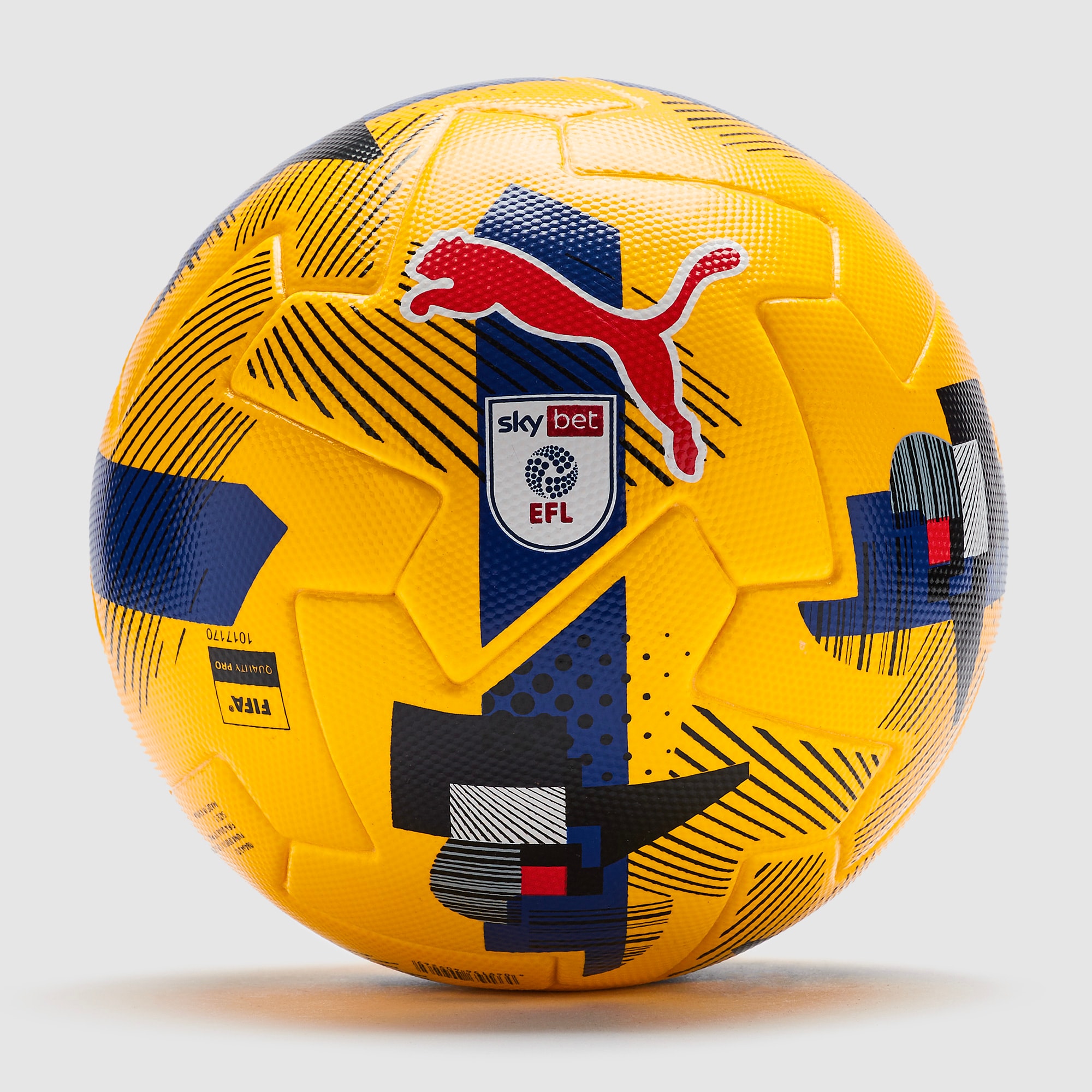 Get ready for the 138th season of EFL football with the PUMA Orbita 1 English Football League 2526 Football in DandelionMulti Colour. FIFA Quality Pro certified, this ball guarantees perfect circumference, weight, rebound and water resistance. Created for the 202526 English Football League season, the Orbita 1 EFL ball is used by some of the most iconic clubs in English football, including prestigious historical powerhouses Blackburn Rovers, Sunderland and Leicester City, exciting upstarts like Wrexham and Stockport County, and newcomers Barnet, competing in their first EFL season in seven years. The vibrant Dandelion base is enhanced with sporty, dynamic graphics and contrast colours to create a bold look that catches the eye and helps you keep track of play in all conditions, come rain, snow or shine. Official Sky Bet EFL branding helps you feel like a pro with the ball at your feet. Deep seams improve the balls aerodynamics to help it travel perfectly through the air, and a 3D textured, 1.2mm PU surface takes swerve and accuracy to the next level, perfect for whipped crosses and powerful precision longshots. A thicker surface provides fantastic durability, and the rubber bladder and PUMA Air Lock valve keep the ball inflated for longer. PUMA 202526 authentic Sky Bet EFL Orbita 1 football FIFA Quality Pro certified English Football League branding 12panel design 3D textured finish POE foam Rubber bladder PUMA Air Lock valve 30 PU, 30 POE foam, 30 synthetic rubber, 10 polyester Requires inflation