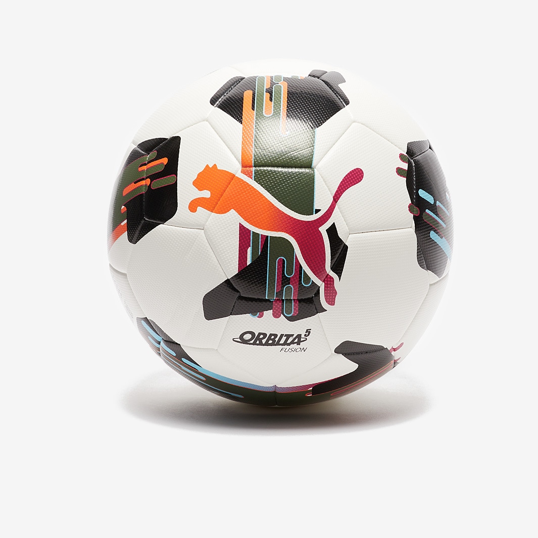 The PUMA Orbita 5 Fusion in Puma WhiteMulti is a highlevel training ball that gives consistent and durable performance. Using FUSION technology to create a machine stitched, multilayered shell with 4mm EVA foam backing, the PUMA Orbita 5 Fusion also features a thin PU top film finish. The result of all these details is a durable ball with enhanced bounce and a soft touch. Main material PU 25, EVA 20, Polyester 7, Rubber bladder 48Robust training ballFUSION technology4mm EVA backingThin PU top film32 panels