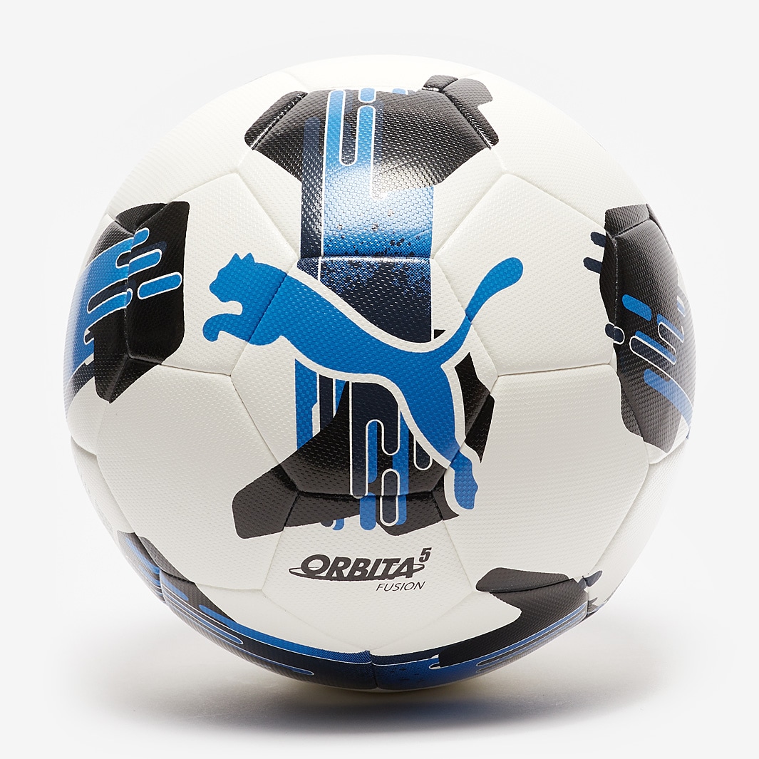 The PUMA Orbita 5 Fusion in Puma WhiteIgnite Blue is a highlevel training ball that gives consistent and durable performance. Using FUSION technology to create a machine stitched, multilayered shell with 4mm EVA foam backing, the PUMA Orbita 5 Fusion also features a thin PU top film finish. The result of all these details is a durable ball with enhanced bounce and a soft touch. Main material PU 25, EVA 20, Polyester 7, Rubber bladder 48Robust training ballFUSION technology4mm EVA backingThin PU top film32 panels