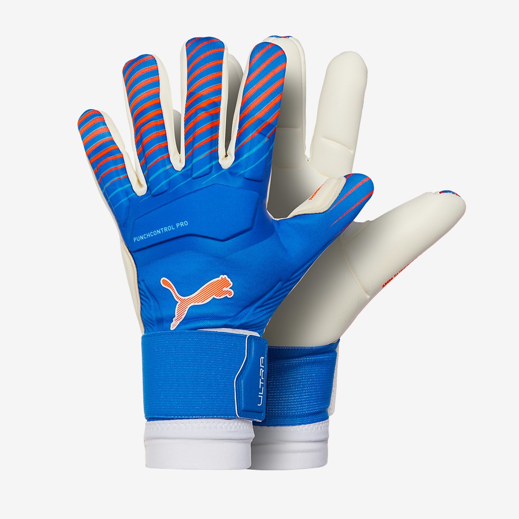 Stay in the zone wearing PUMA Ultra Ultimate Hybrid goalkeeper gloves in Ultra BlueGlowing Red, featuring an updated backhand made with breathable, flexible fabric. Designed to minimise distractions on the pitch, the Ultras streamlined backhand pairs a lightweight textile body with precisely placed silicone grip elements. The new setup allows increased range of motion when you flex your hand, so punching and handling the ball feels natural and comfortable. Perforations in the fabric keep your hands fresh and your mind on the game.On the palm, PUMAs elitelevel Superior Grip latex excels in both wet and dry conditions, while the Hybrid editions combo of negative and rollfinger cuts gives you the ideal mix of a snug fit and maximised ball contact. Ultra range endorsed by Jordan Pickford and Ellie Roebuck Palm 4mm Superior Grip latex palm for grip in wet and dry conditions Cut Hybrid combination of negative and rollfinger BackhandBody Light and stretchy body material with perforations and silicone grip elements Wrist Closure Elasticated cuff with wrist strap Thumb wrap