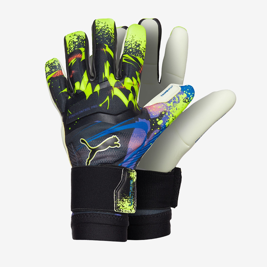 Set your side up for another clean sheet with PUMA Ultra Ultimate Teaser Hybrid goalkeeper gloves in Puma BlackLuminous PurpleLime Squeeze, featuring an updated backhand with Punchcontrol Pro padding for maximum power on clearances. Designed to give you punching power like the worlds best keepers, the Ultras streamlined backhand pairs a lightweight textile body with new Punchcontrol Pro reinforcement. The 3D padding absorbs impact forces when you punch the ball, returning energy to propel your clearances away from goal. Perforations in the fabric keep your hands fresh and your mind on the game. On the palm, PUMAs elitelevel Superior Grip latex excels in both wet and dry conditions, while the Hybrid editions combo of negative and rollfinger cuts gives you the ideal mix of a snug fit and maximised ball contact. Ultra range endorsed by Jordan Pickford and Ellie Roebuck Palm 4mm Superior Grip latex palm for grip in wet and dry conditions Cut Hybrid combination of negative and rollfinger BackhandBody Light and stretchy body material with NEW Punchcontrol Pro padding Wrist Closure Elasticated cuff with wrist strap Thumb wrap