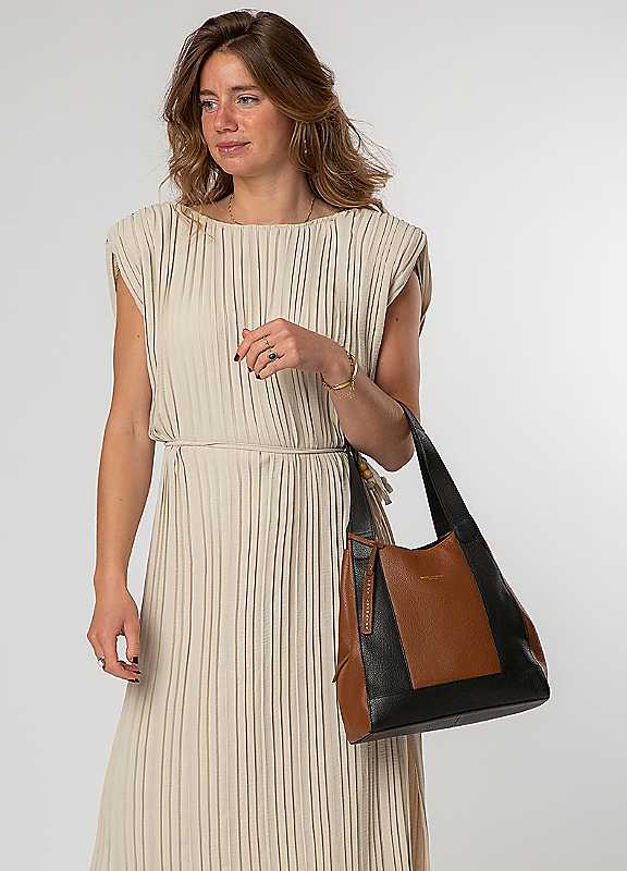 The 'Colette' handbag from Pure Luxuries London is crafted from supple leather with a beautifully soft to the touch finish. The central compartment is lined with a cotton blend lining. Additional storage is provided by two slip pockets either side of the central compartment. Adorned with matching leather carry handles and furnished with the gorgeous Pure Luxuries London leather charm and gold foil logo, for that perfect finishing touch.Outer: 100% LeatherLining: Cotton BlendDimensions approx. 28W x 11D x 27H cm | leather purse handles, neutral colored bags, casual handbags, luxury leather bags, color block handbags, genuine leather handbags, top handle handbags, leather hobo handbags