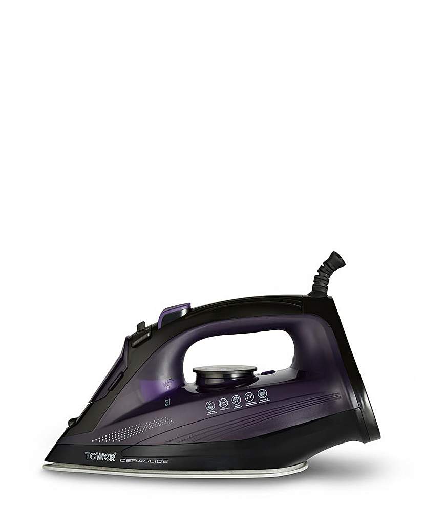 Remove tough creases out of all your laundry with the 2600W performance from Towers CeraGlide ultra - speed steam iron that rapidly heats up in seconds. Its robust CeraGlide coated soleplate is multi-layered and works fantastically on all fabrics providing an effortless glide for simple ironing. Its large 360ml water tank reduces time wasted on refilling. The iron has an array of functions such as an anti-drip setting during low temperature ironing, an anti-calc to prevent limescale and a self-cleaning setting for stress-free maintenance for a long lasting appliance. The vertical steam precision technique means you can attack stubborn wrinkles in your bedding and curtains provided by the spray and 160g steam burst setting. Complete with an extra-long 1.8m power cord, it provides freedom to move painlessly while ironing bedding and curtains. Includes a dry iron role prevents damage caused to delicate fabrics like silk. Steam Boost & Continuous Steam: The powerful 160g steam boost function tackles stubborn creases with ease, whilst the 40g/min of continuous steams makes light work of most fabrics. Ceraglide Ceramic Soleplate: Effortlessly glide through ironing pile due to the non-stick scratch resistant ceramic Ceraglide soleplate for fast and simple ironing. Large 360Ml Water Tank Capacity: Enjoy fewer results due to the large 360ml water tank capacity, so you can iron more of your clothes in one go. Anti-Calc & Self-Clean Function: Self-clean and anti-calc functions prevent build-up of harmful scale and prolongs the performance and life of the iron. 3 Year Guarantee: Trusted Tower quality with a standard 1 year guarantee and an optional 2 year extension, subject to product registration online