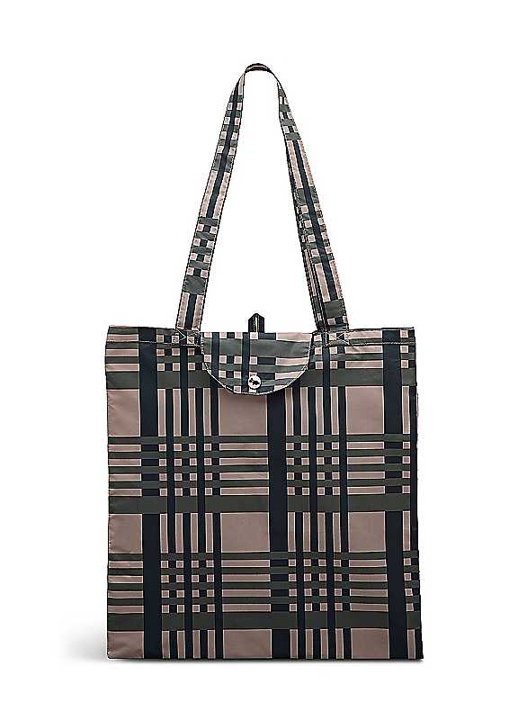 A style you shouldn't be without, this foldaway bag is designed to be carried in your handbag and pulled out whenever you need it. Made using recycled fabric with a timeless check print.Made using recycled fabricCheck printShoulder strapsFoldable design with press stud fasteningPart of the Radley Responsible collectionFabricDimensions approx. 37W x 41H x 0.1D cm