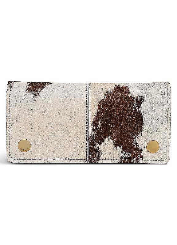One way to make a purse even more practical is to make it a clutch bag too. That's exactly what our Designers did when they created the Chester Row purse - a slim, flapover shape in soft grain leather with a detachable wristlet chain strap and pocketed interiors. It combines style and functionality at your fingertips.Why we love it: Our Designers have selected genuine cowhide leather to craft this purse, using the cutting loss from this season's matching handbags to reduce waste. As it is a natural material, no two cuts of cowhide are the same, meaning there will be some variation in the patterning across each purse.Genuine cowhide leatherDetachable wristlet chain strap with T-bar fasteningFlap with leather-covered press studs and central seamGrain leather interiorEight card slotsZipped pocket with leather pullerInterior slip pocketsHeritage markFoil logoComes with a dust bagLeatherDimensions approx. 9.5H x 17.5W x 1.5D cm