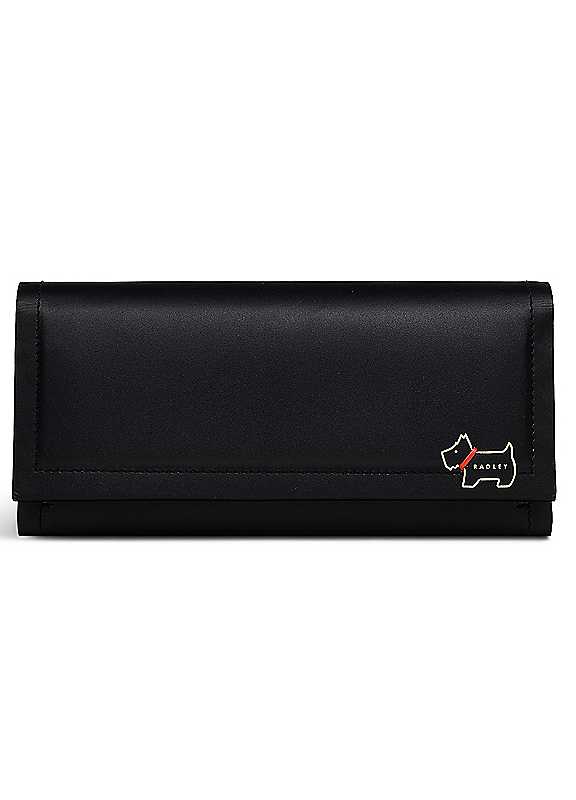 Smooth durable leather, practical interiors and our Scottie dog mascot. The Heritage Border purse features all three, as we wouldn't be Radley without them. A spacious style to keep your cash and cards organised, that's carefully finished with inset stitching and painted cut edge details. Made with smooth leather Inset stitching and painted edges Embossed dog and logo Flap with press stud fastening 12 card slots Two compartments Two slip pockets Zipped coin pocket with branded metal puller Slip back pocket Comes with a dust bag Leather Size approx. 19.5W x 9.5H x 2.5D cm