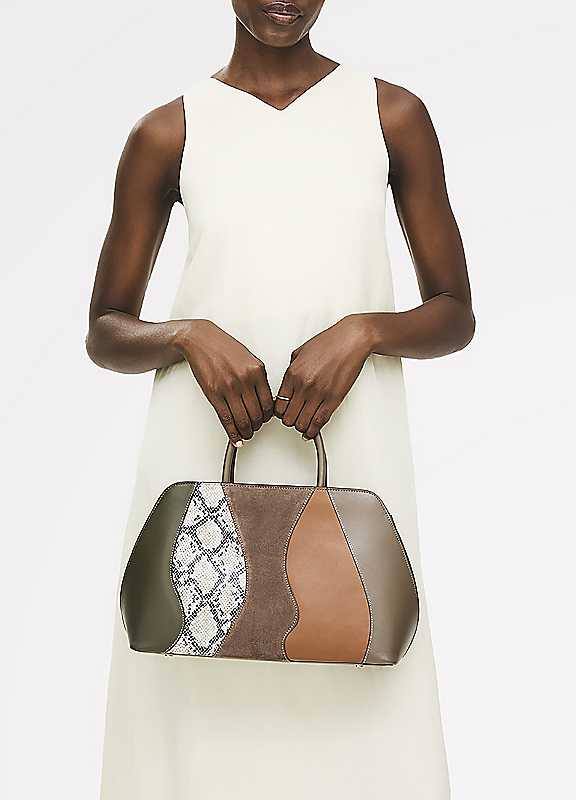 The sleek silhouette of our Liverpool Street grab bag, created with a curving textured patchwork of Italian suede, snake-embossed, grain and smooth leathers. With the same features as the original, including three interior compartments and a detachable strap.Textured leathersCurving patchwork designGrab handlesDetachable cross body strapThree compartment interiorZipped centre section with branded metal pullerRadley canvas liningInterior pocketBack slip pocketFoil logoComes with a dust bagLeatherDimensions approx. 30.5W x 21H x 12.5D cm
