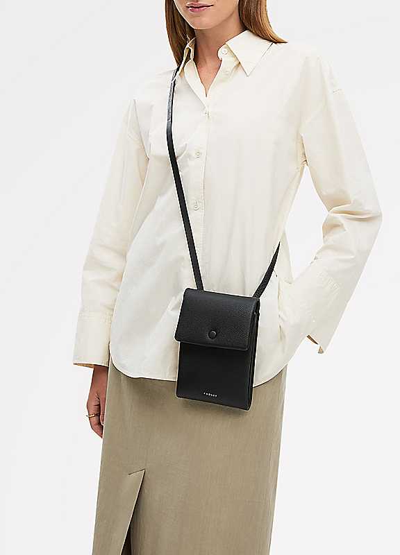 Super soft and irresistible, our Mallow Street phone cross body bag has a lot in common with our favourite treat. But unlike a marshmallow, this style is made with sumptuous, padded leather that'll last a lifetime. With card slots, compartments and pockets inside and still enough room to fit your phone. Made with padded leather Adjustable strap Flap with leather-covered stud detail Press stud fastening Two compartments Interior card slots Interior pockets Fits a phone Foil logo Comes with a dust bag Leather Size approx. 13W x 21H cm | crossbody phone bag, leather crossbody bag, card slot purse, leather crossbody purse, long strap crossbody, minimalist handbag, small black bag, leather mobile pouch