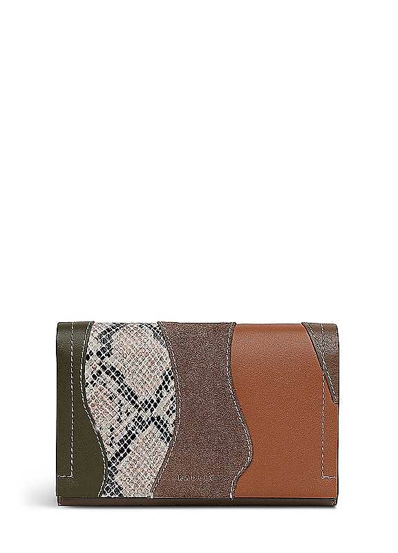 The reliable Oak Street purse, now crafted with a textured patchwork made up of soft suede, snake-embossed, grain and smooth leathers. Look closely to see those signature, thoughtfully designed features including the inset edge stitching, the branded hardware and our new heritage mark inside.Textured leathersPatchwork designInset stitch detailingFlap with press stud fasteningFive interior card slotsTwo slip pocketOne gusseted pocketZipped coin pocket with branded metal pullerHeritage markBlind embossed logoComes with a dust bagLeatherDimensions approx. 15W x 9.5H x 2.5D cm