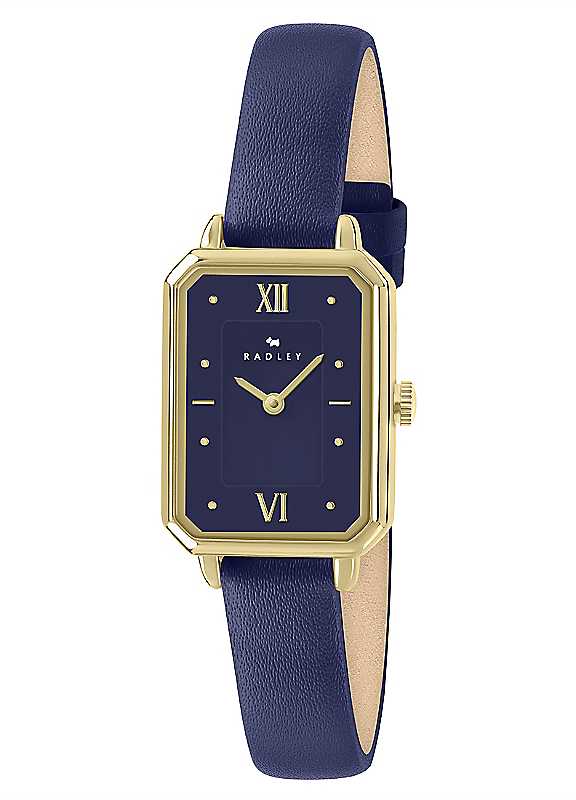 Radley London Dawes Avenue Ink Leather Strap Watch. This watch features a distinctive 20mm octagonal shaped gold case. Designed for the everyday, the polished case frames a striking ink colour satin dial. Finished with a tonal ink genuine leather strap and fastened with a traditional polished gold buckle, for a classic yet feminine feel. Presented in a beautiful Radley London giftbox, with 2 year guarantee.Leather
