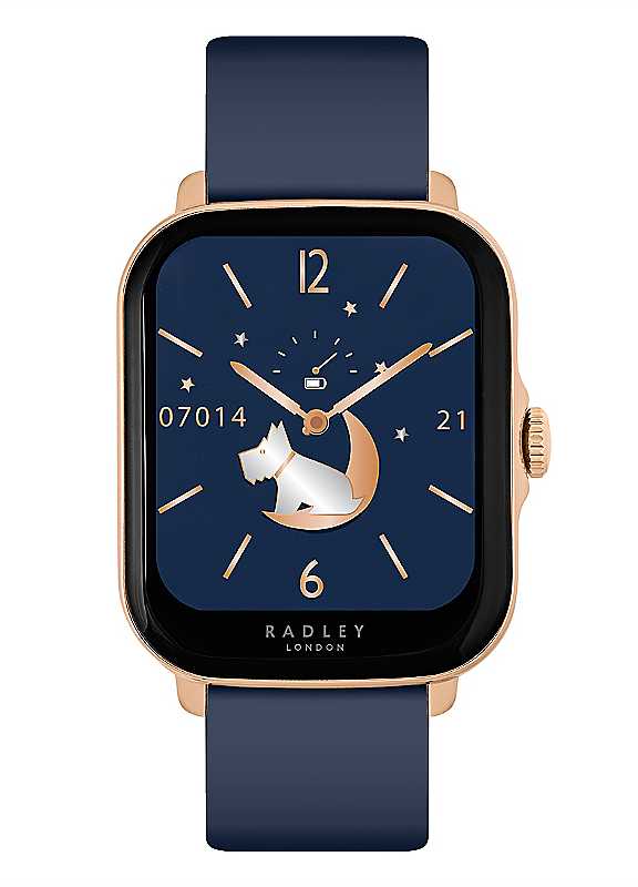 With its advanced calling feature the Radley London Series 20 smartwatch is perfect for those who lead a busy lifestyle. The hands-free call feature allows you to make and receive calls directly from your watch, anytime, anywhere. Searching for your phone in a bag or pocket is now a thing of the past! It comes with a range of features that make it the perfect watch for all daily activities, including great wellness features such as sleep analysis, hydration reminders and breathing exercises. Series 20 is your perfect training partner, with built in heart rate monitor, multiple sports tracking, and music control. You can track your fitness progression through the Radley App. Set your goals and smash them! With the ability to change dials and have your own photos as a background, you to customize your watch and make it your own. This watch is designed with an Ink Silicone Strap. Each watch is packed in a Radley London presentation gift box complete with instruction manual, USB charger (sealed rechargeable battery) and a 2-year manufacturer guarantee. Download the free Radley Active App now to explore in more detail. IOS & Android Compatible.Brand: Radley LondonRound Rose Gold Rectangle CaseHeart Rate Monitor GPS Connection, Make Calls, Call Notifications, Step Counter, 14 Sport Modes (Walking, Running, Treadmill, Hiking, Cycling, Swimming, Rower, Elliptical, Stair Climber, Skipping, Yoga, Workout, Gold, Badminton) Hydration/Sedentary/Breathing Reminders, Phone/Watch Locator, Weather Updates, Sleep Monitor (9pm - 8am), Blood Oxygen, Customised Dials.