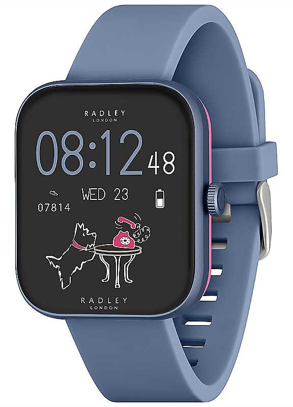 Experience style and innovation with the Radley Series 32 Smart watch. Stay connected with the convenience of hands-free calling, to make and receive calls directly from your watch anytime, anywhere!For your safety & well-being, we've added an SOS feature, meaning that if you ever find yourself needing help or assistance, you can tap your watch to sound a loud alarm & call your emergency contact.The Series 32 has a generous 1.8inch display and features an extensive dial collection for you to choose from or make your watch unique by uploading a photo to personalise your dial. This Radley Smart watch also offers all the lifestyle & wellness features you need, including health benefits like step count, heart rate monitor, blood oxygen, cycle tracking, calories, sleep analysis, multiple sports tracking and many more. Stay connected & on top of your day with call, message and social notifications, music control & GPS connection.The 38mm aluminium case is complimented by a contrast case back, giving a playful pop of colour and is finished with a fully adjustable, soft silicone strap.Our smart watches are presented in a gift box complete with instruction manual, USB and a 2-year guarantee. Download the free Radley London App to enjoy additional functionality. IOS 12+ & Android 8.0+ Compatible.Brand: Radley LondonMake & Receive CallsSOS Emergency AlarmRead Text Messages & Social NotificationsLive Weather UpdatesMusic ControlHeart Rate MonitorCycle TrackingHealth RemindersSelfie CameraCalorie CounterWatch LocatorSleep MonitorBlood Oxygen ReadingsDial PersonalisationMultiple Sport ModesIP67 Water Resistant Rating1.8inch ScreenCalling FeatureMessage NotificationsStep Counter22 Different Sport Modes to TrackCalorie CounterSleep MonitorHeart Rate MonitorGPS ConnectionIP67 Water ResistanceBlood OxygenHydration RemindersSilicone