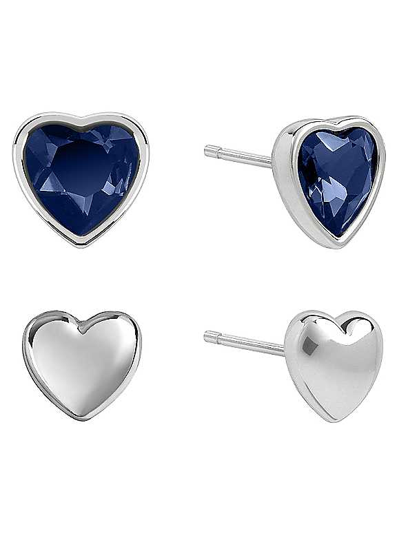 Radley Silver Plated Blue Heart Stone Set Twin Pack Stud Earrings. This silver plated earring set is perfect for any occasion! This set features elegant smooth silver heart studs and glistening blue stone set heart studs. Presented in a beautiful, sourced, Radley London gift box.Brand: Radley LondonPack of 2Glistening Blue StoneSmooth Silver Heart StudsBrass | brass stud earrings, dainty silver earrings, small silver earrings, casual earrings for women, heart shaped earrings, simple elegant earrings, silver plated earrings, stud earrings, blue stone earrings