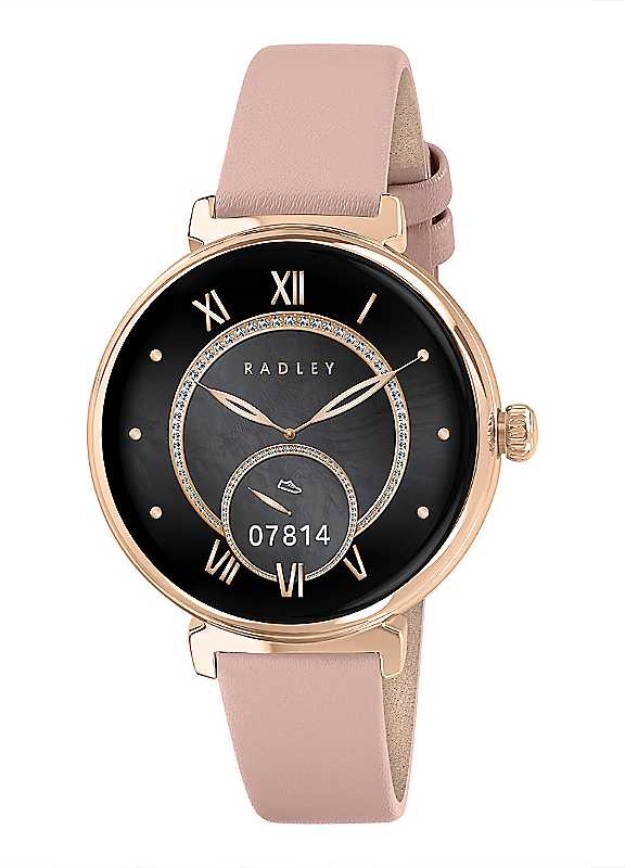 The Radley Series 48 AMOLED smart offers an amazing collection of bright high-definition dials on a 1.04 ins AMOLED display. The innovative Always-On display keeps your dial visible without a touch or tilt and the Dual-Time feature shows the time home and away, to ensure you always stay in sync while traveling.Personalise your watch with interchangeable dials or customise by using your own photo.Additionally, for your peace of mind, the watch includes an SOS feature that allows you to quickly sound an alarm and notify your emergency contact if you ever find yourself in need of help.On-wrist calling, messages, and social notifications keep you effortlessly connected without having to reach for your phone.The Series 48 offers a range of lifestyle and wellness features that include step counting, 100+ diverse sports modes, heart rate monitor, blood oxygen level tracking, cycle tracking, sleep analysis and much more. To explore the full range of Radley Series 48 features download the Radley app, compatible with Android 9.0+ and iOS 12+. IP68 water resistant. | pink digital watch, round dial smart watch, pink sports watch, rose gold smart watch, dual clock watch