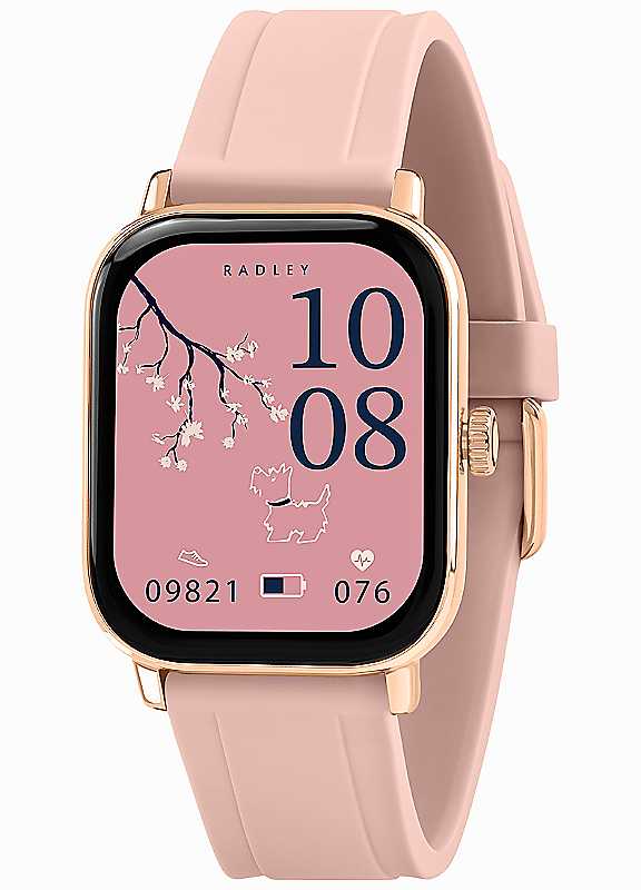 Radley Series 56 Smart watch allows you to stay connected with the convenience of hands-free calling, to make and receive calls directly from your watch anytime, anywhere. The Series 56 has a petite case and 1.75 ins full touch screen with a variety of interchange dials so you can personalise or customise by using your own photo. The Series 56 also offers an extensive range of lifestyle and wellness features, including step count, heart rate monitor, blood oxygen, cycle tracking, calories, sleep analysis, multiple sports tracking and more. Additionally, for your peace of mind, the watch includes an SOS feature that allows you to quickly sound an alarm and notify your emergency contact if you ever find yourself in need of help. Stay connected with call, message and social notifications, music control and GPS connection. The set also includes TWS Earbuds with Charging Case. The earbuds feature: Bluetooth Version 5.0, with over 15 hours of play time combined with case charge and 10m Wireless Range. iOS & Android Compatible. The Series 56 watch has a rose gold plated case with soft pink silicone strap. To explore the full range of Radley Series 56 features download the Radley app, compatible with Android 9.0+ and iOS 12.Silver Plated | wireless earbuds, earbuds for calls, tws bluetooth earbuds, tws for calls, earbuds for android, petite smart watch, pink smart watch, heart rate monitor, rectangular watch women, casual smart watch, full touch screen, digital smart watch, fitness tracker watch, gps smart watch, silicone strap watch, music smart watch, ios smart watch, android smart watch, tws smart watch, calling smart watch
